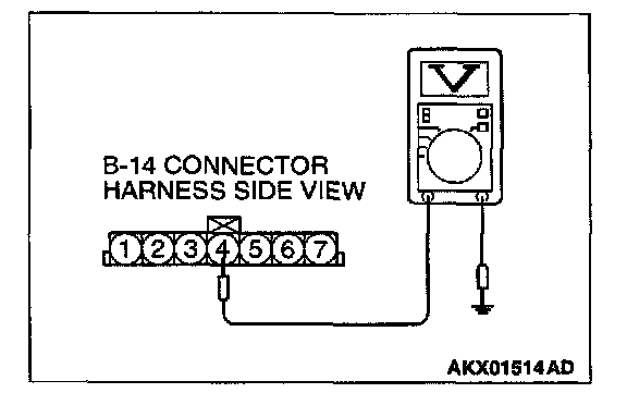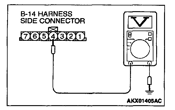 STEP 2. Check the power supply voltage at volume air flow sensor connector B-14 by backprobing.