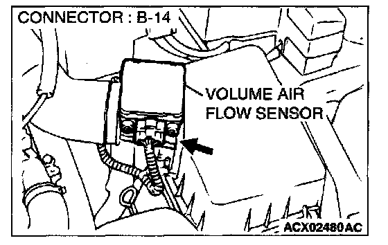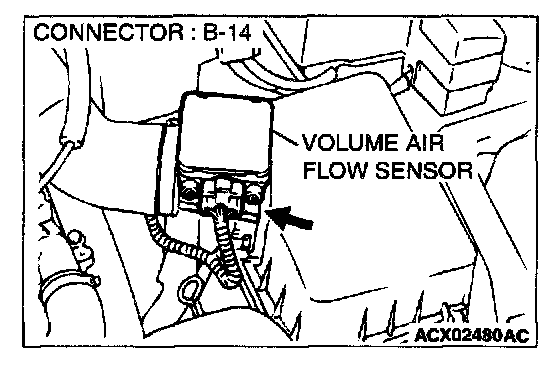 STEP 1. Using scan tool MB991502, check data list item 12: Volume Air Flow Sensor.