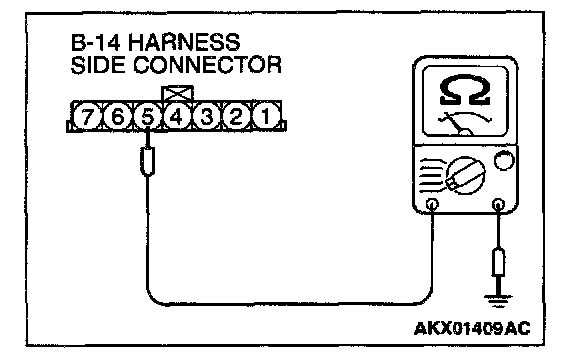 1. Disconnect the connector B-14 and measure at the harness side.