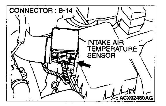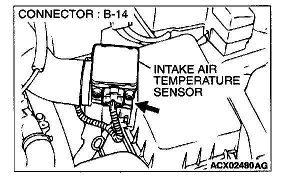 STEP 3. Check connector B-14 at the intake air temperature sensor for damage.