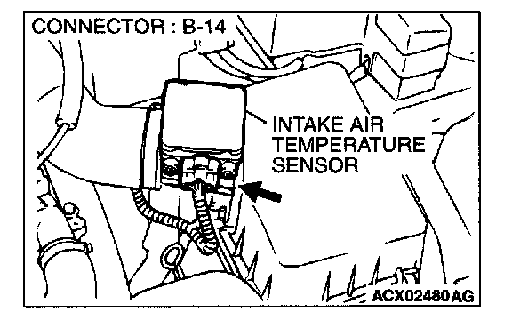 STEP 1. Using scan tool MB991502, check data list item 13: Intake Air Temperature Sensor.