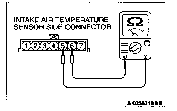 2. Measure the resistance between intake air temperature sensor side connector terminal 5 and 6.