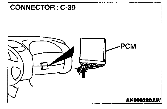 CAUTION: To prevent damage to scan tool MB991502, always turn the ignition switch to the "LOCK" (OFF) position before connecting or disconnecting scan tool MB991502.