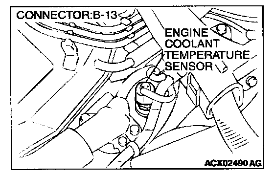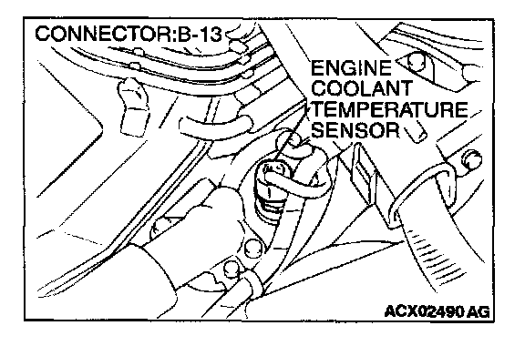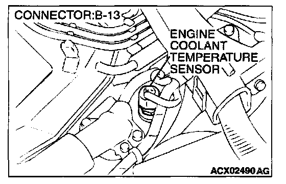 1. Disconnect the engine coolant temperature sensor connector B-13.