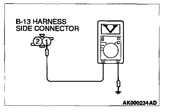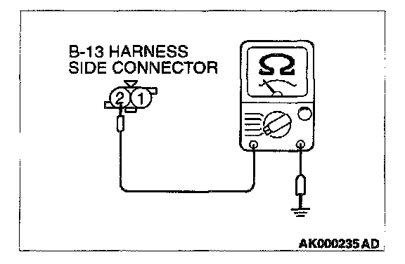 1. Disconnect the connector B-13 and measure at the harness side.