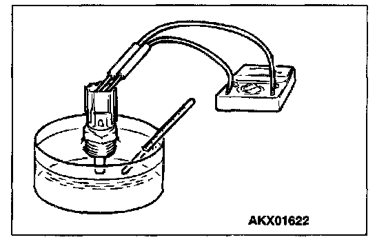 3. With the temperature sensing portion of engine coolant temperature sensor immersed in hot water, check resistance.