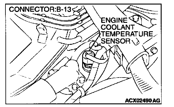 1. Disconnect the engine coolant temperature sensor connector B-13.