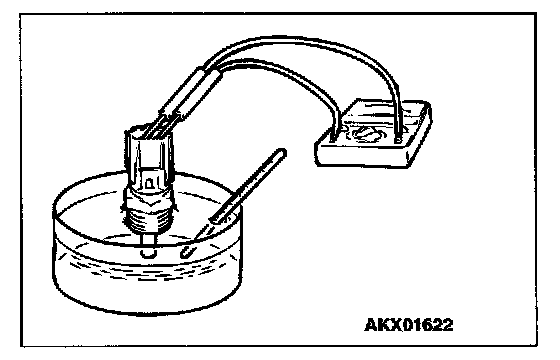 3. With the temperature sensing portion of engine coolant temperature sensor immersed in hot water, check resistance.