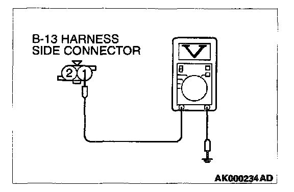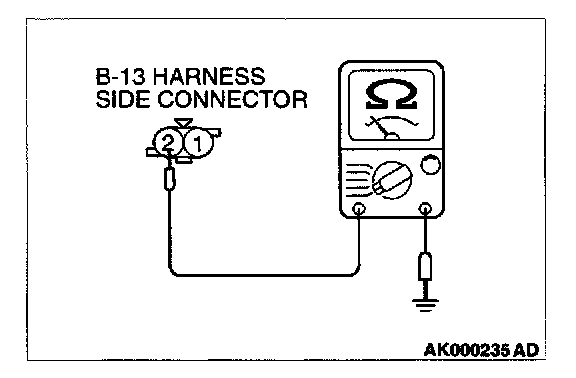 1. Disconnect the connector B-13 and measure at the harness side.