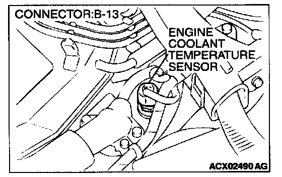 2. Disconnect the engine coolant temperature sensor connector B-13.