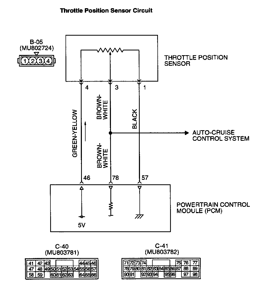 - A 5-volt power supply is applied on the throttle position sensor power terminal (terminal 4) from the PCM (terminal 46).