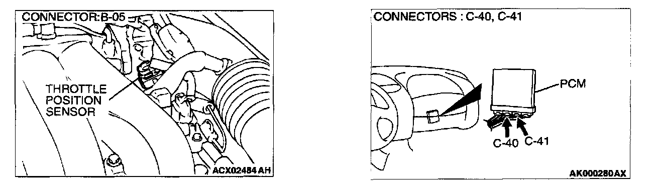STEP 8. Check for open circuit and short circuit to ground between throttle position sensor connector B-05 terminal 3 and PCM connector C-41 terminal 78.
