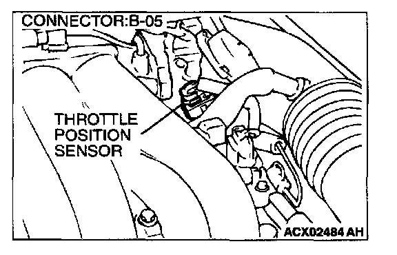 3. Set scan tool MB991502 to the data reading mode for item 14, Throttle Position Sensor.