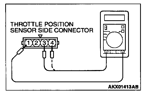 3. Measure resistance between the throttle position sensor side connector terminal 1 and 3.