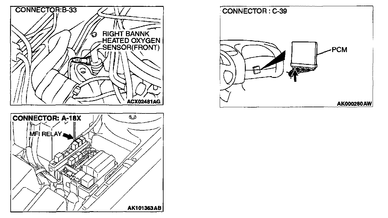 STEP 9. Check for harness damage between MFI relay connector A-18X terminal 4 and right bank heated oxygen sensor (front) connector B-33 terminal 1.