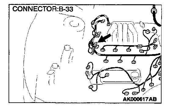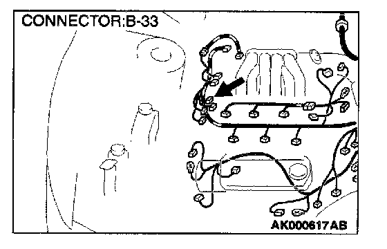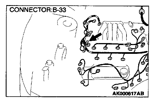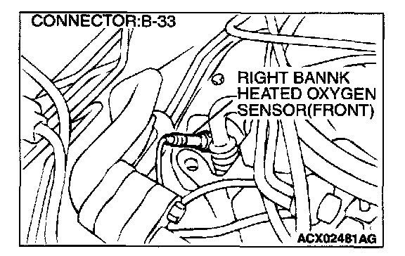 1. Disconnect right bank heated oxygen sensor (front) connector B-33 and connect test harness special tool, MD9984&4, to the connector on the right bank heated oxygen (front) sensor side.