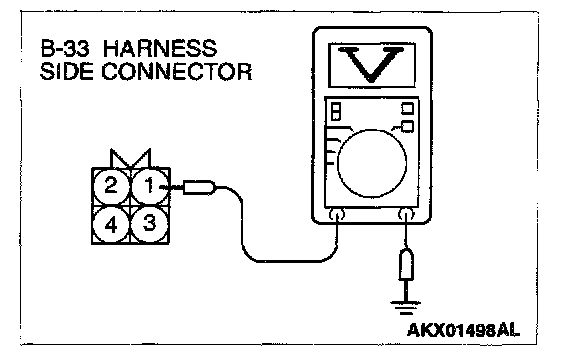 STEP 3. Check the power supply voltage at right bank heated oxygen sensor (front) harness side connector B-33.
