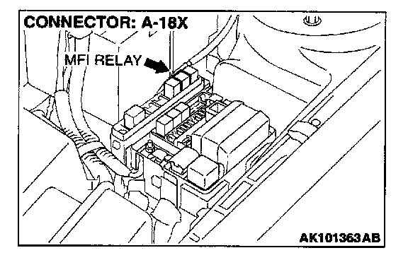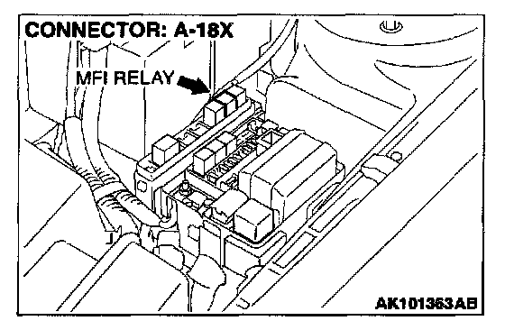 STEP 4. Check connector A-18X at the MFI relay for damage.