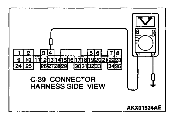 STEP 10. Check for harness damage between right bank heated oxygen sensor (front) connector B-33 terminal 3 and PCM connector C-39 terminal 4.