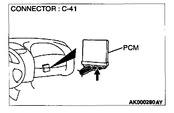 CAUTION: To prevent damage to scan tool MB991502, always turn the ignition switch to the "LOCK" (OFF) position before connecting or disconnecting scan tool MB991502.