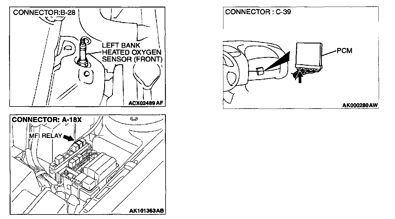 STEP 9. Check for harness damage between MFI relay connector A-18X terminal 4 and left bank heated oxygen sensor (front) connector B-28 terminal 1.