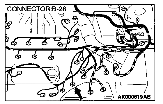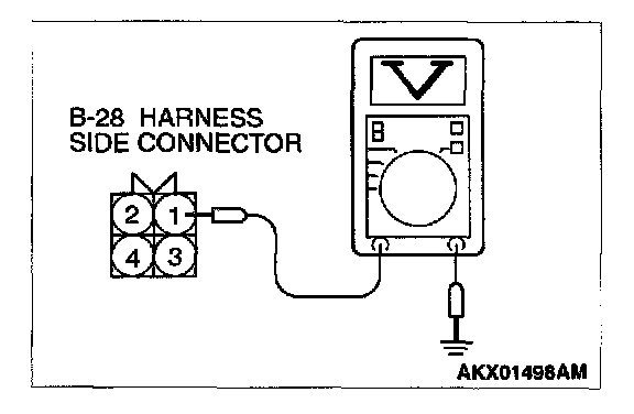 1. Disconnect the connector B-28 and measure at the harness side.