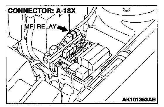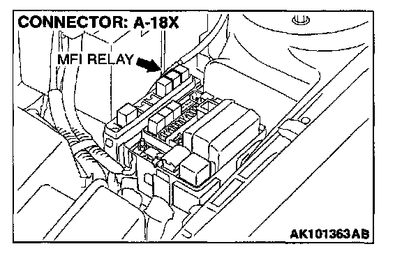 STEP 4. Check connector A-18X at the MFI relay for damage.