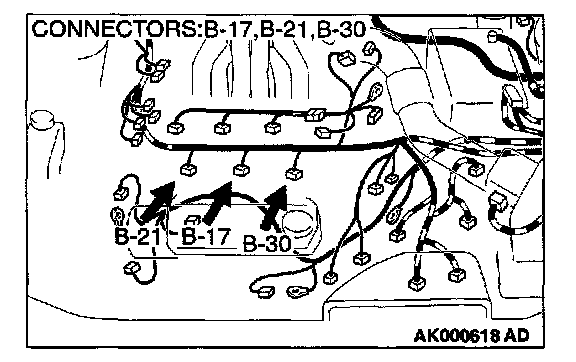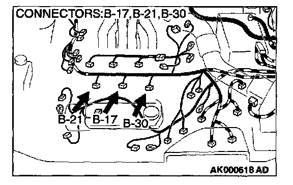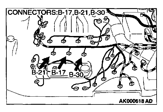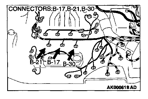 1. Disconnect the left bank injector connector B-17, B-21, B-30.