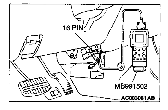 1. Connect scan tool MB991502 to the data link connector.
