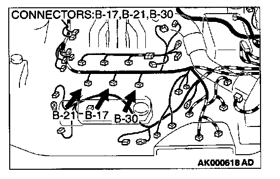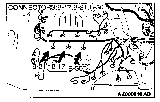 1. Disconnect the left bank injector connector B-17, B-21, B-30.