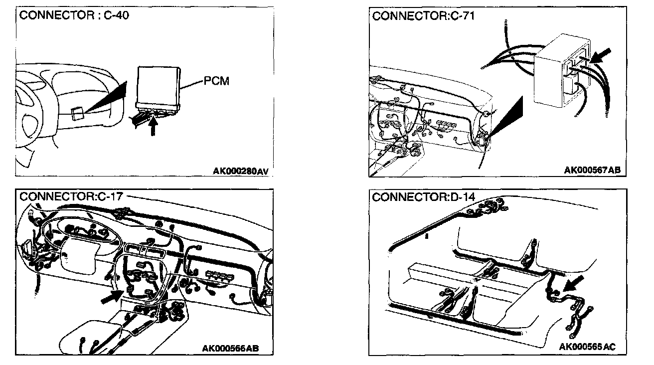 STEP 3. Check connector D-14 at the fuel temperature sensor and connector C-40 at PCM for damage.
