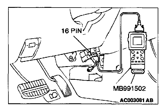 CAUTION: To prevent damage to scan tool MB991502, always turn the ignition switch to the "LOCK" (OFF) position before connecting or disconnecting scan tool MB991502.