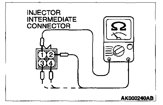 STEP 3. Check the injector resistance at injector intermediate connector B-26.