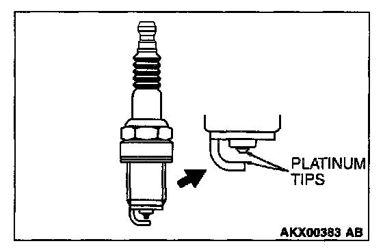 CAUTION: Do not attempt to adjust the gap of the platinum plug. Cleaning of the platinum plug may result in damage to the platinum tips. Therefore, if carbon deposits must be removed, use a plug cleaner and complete cleaning within 20 seconds to protect the electrode. Do not use a wire brush.