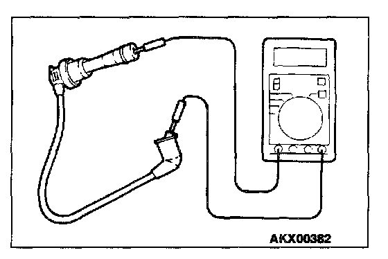2. Measure the resistance between injector side connector terminal 1 and 2.