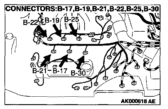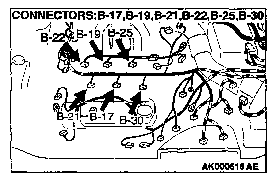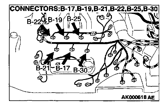 b. Check the connector B-21 at injector and connector B-26 at injector intermediate connector when checking No.2 cylinder.