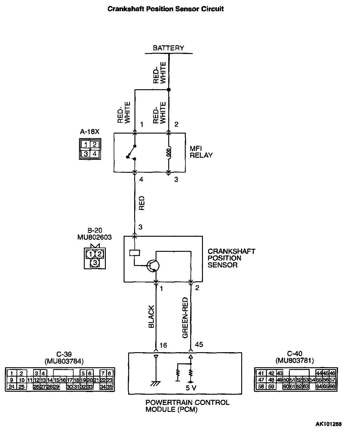 - The crankshaft position sensor power is supplied from the MFI relay (terminal 4).
