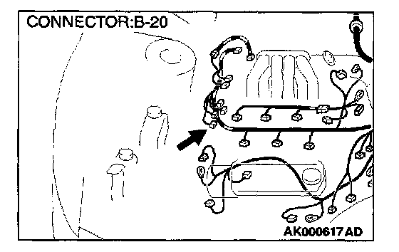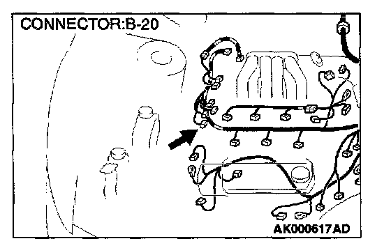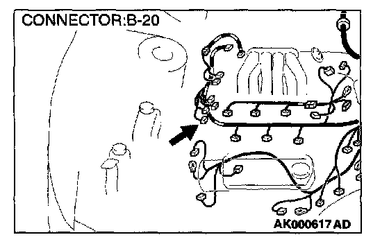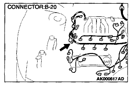 STEP 5. Check connector B-20 at the crankshaft position sensor for damage.