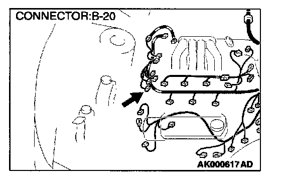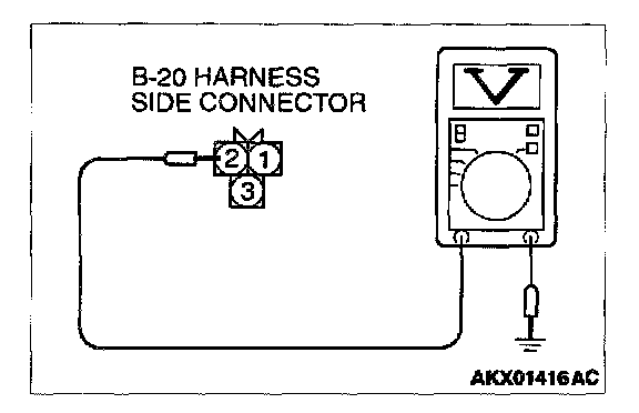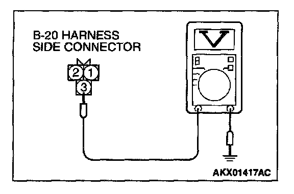 1. Disconnect the connector B-20 and measure at the harness side.