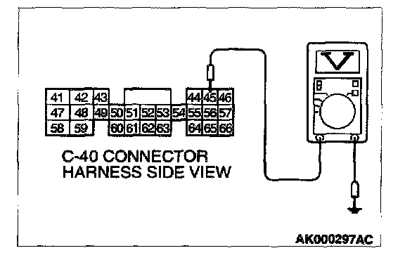 STEP 7. Check the sensor supply voltage at PCM connector C-40 by backprobing.