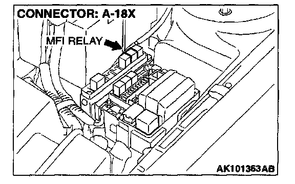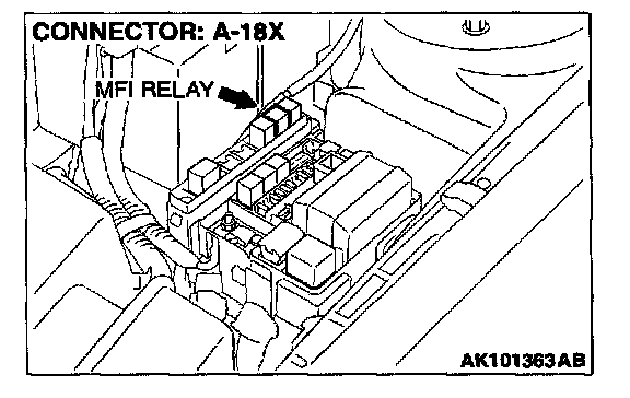 STEP 12. Check connector A-18X at MFI relay for damage.