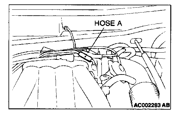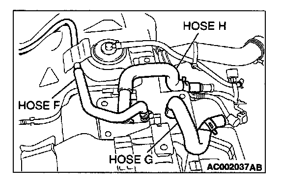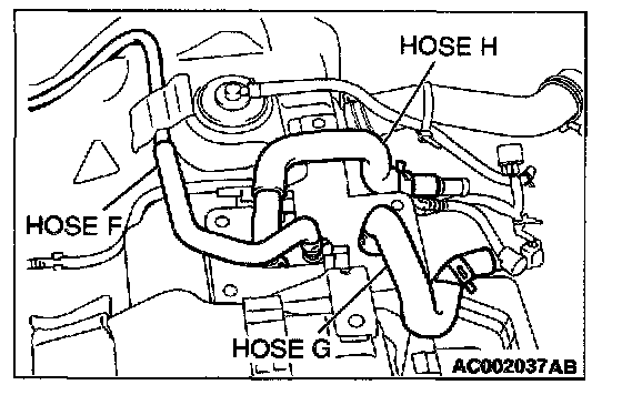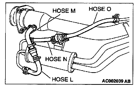 1. Disconnect hose I from the evaporative emission canister side, and plug the hose I.