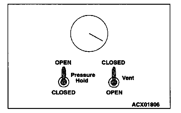 2. On the EVAP pressure pump, set the pressure/hold valve to OPEN, and set the vent valve to CLOSED. Turn the pump timer to ON, You can reset the timer as required. (These settings are listed under "Leak Test" in the pump instructions.)