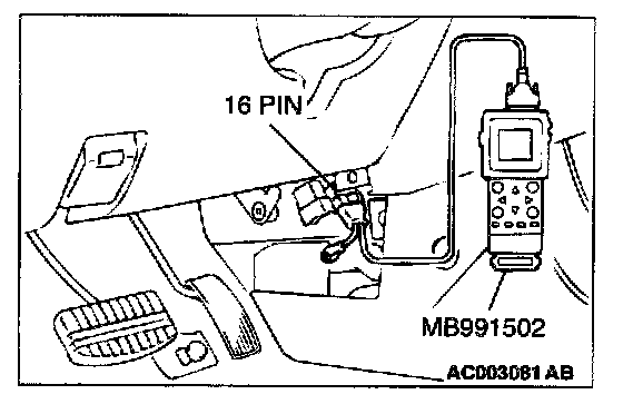 1. Connect scan tool MB991502 to the data link connector.