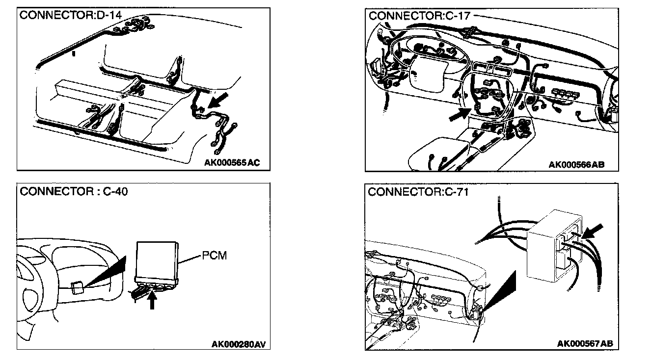 STEP 11. Check for harness damage between fuel gauge unit connector D-14 terminal 2 and PCM connector C-40 terminal 60.