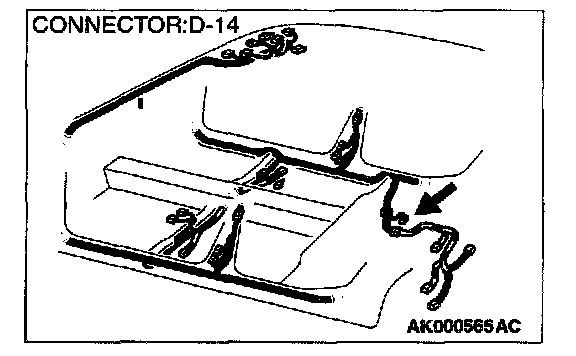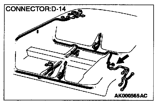 STEP 2. Check connector D-14 at the fuel gauge unit for damage.