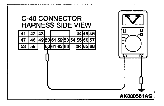 STEP 5. Check the sensor supply voltage at PCM connector C-40 by backprobing.