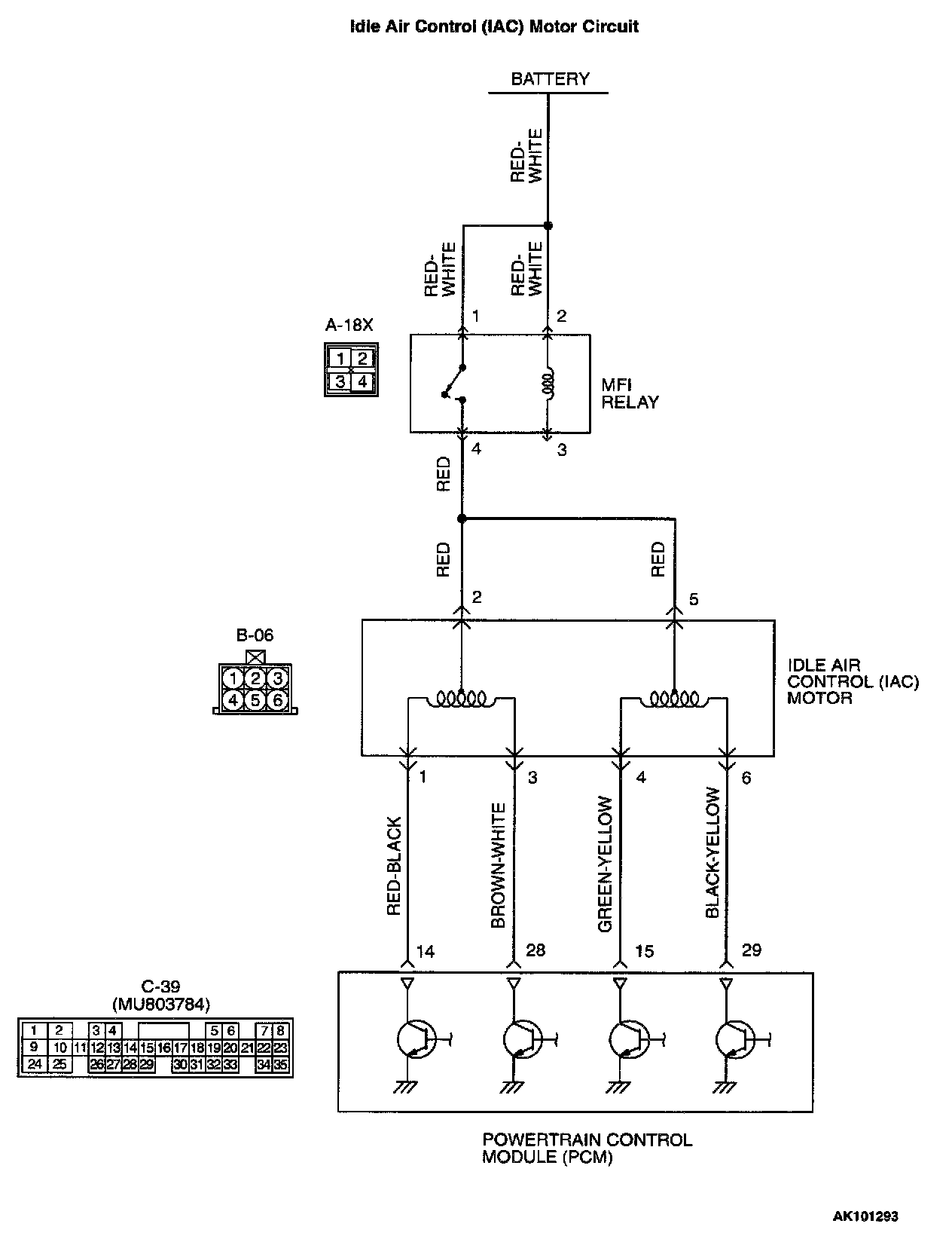- The idle air control motor power is supplied from the MFI relay (terminal 4).