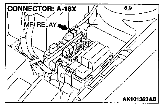 STEP 6. Check connector A-18X at MFI relay for damage.