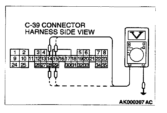 STEP 7. Check the power supply voltage at PCM connector C-39 by backprobing.